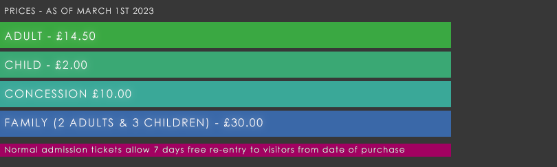 It is with great regret that we have to announce an increase in the price of our entrance tickets from 1st March 2023. The new prices are Adults £14.50 Children age 5 to 15 £2.00 Family Ticket – 2 Adults & 3 Children – £30.00 Concessions £10.00 Concessions are senior citizens 65 and over, holders of a current MOD identity card and certain other categories where prior arrangements have been made. Please call us on 01983 305 555 if you are unsure whether you qualify or not. If you are visiting the Island and are travelling in a car with Red Funnel, you can purchase our tickets from their website when you make your booking. There is a 20% discount on the above prices using this method. From time to time offers are available through The price is wight. Please visit their website to see what is on offer at the time of your visit.